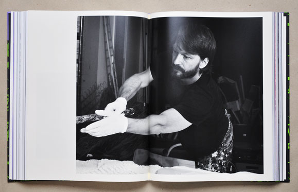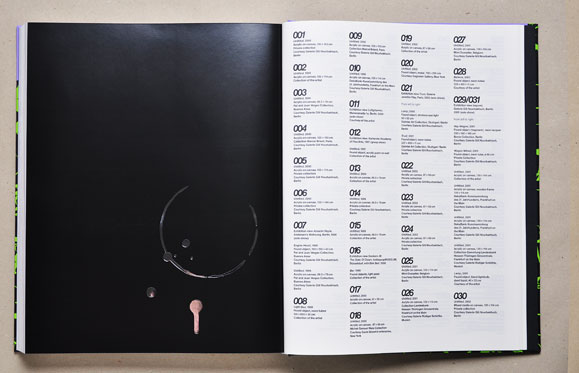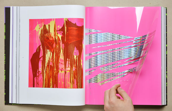 A series of precisely ordered and technically elaborate print finishing techniques—such as foil stamping, silkscreen printing, and embossing—are rhythmically interwoven throughout the book to create new combinations of these paintings selected from the artist’s body of work. The results are new images that truly transform this monograph into an artist’s book. Production was planned by Heimann und Schwantes and executed in close cooperation with the lithographer Max Hannes.