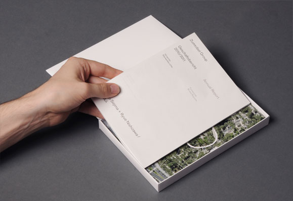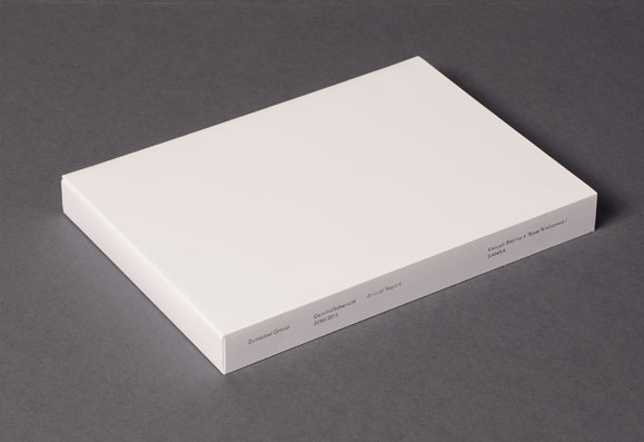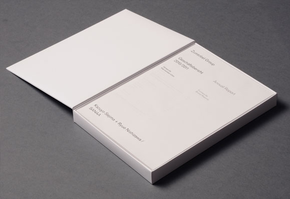 The Zumtobel Group, a leading company in the field of lighting solutions and components, is known for their tradition of editing exceptionally designed business reports with architects, artists and designers. In close collaboration with the Japanese architectural firm SANAA we designed a radically reduced and sophisticated report. Devided in two parts in a filigree box, photographies of works of SANAA are printed on solid cards and the actual business report is printed on a block of bible paper.