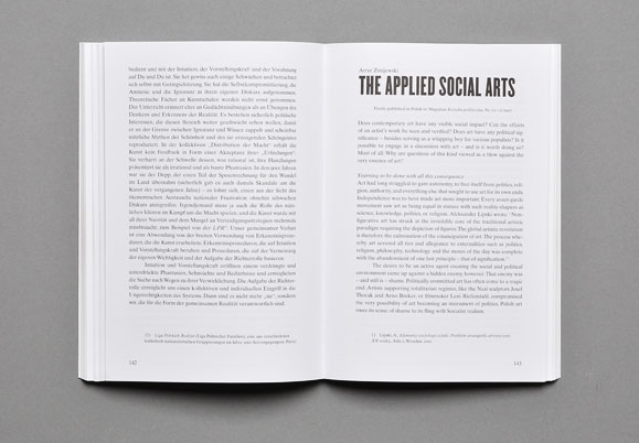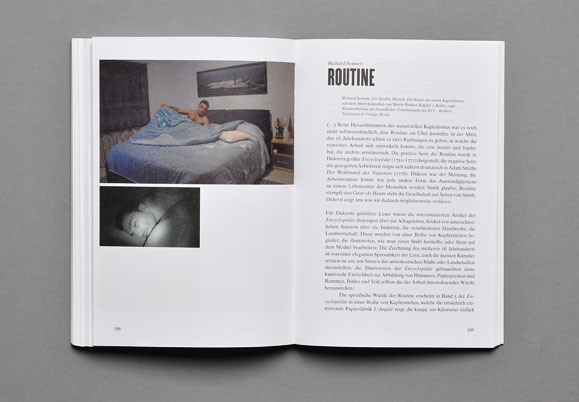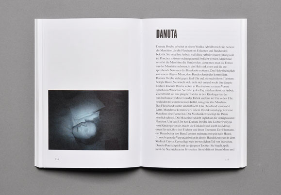 For his show Selected Works at the Neuer Berliner Kunstverein, Artur Zmijewski asked us to create a novel-like textbook instead of a classical exhibition catalog. The artist presented films that depict twenty-four hours in the lives of workers in Mexico, Poland, Italy, and Germany.