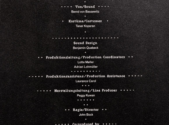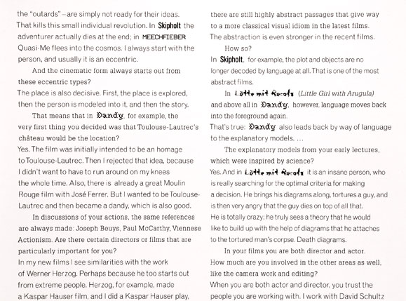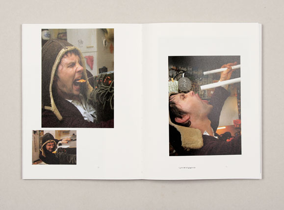 For this catalogue of John Bock’s cinematic works that was created in close collaboration with the artist, the creators chose to rely almost exclusively on set photography. The result is a hybrid of a photography book and a film book, that was presented at Bock’s exhibition at the Schirn Kunsthalle Frankfurt.