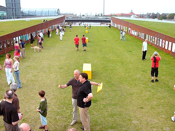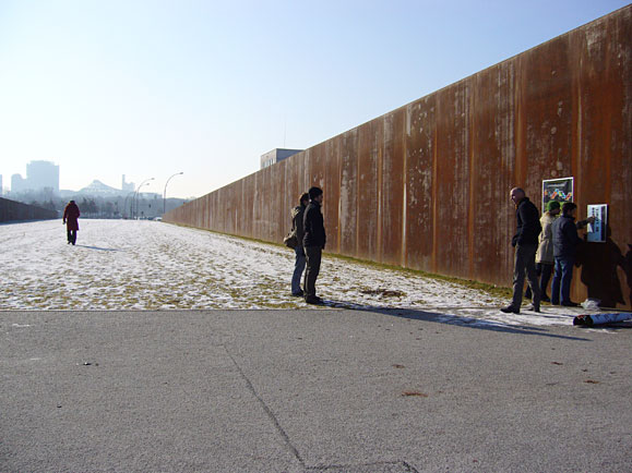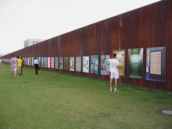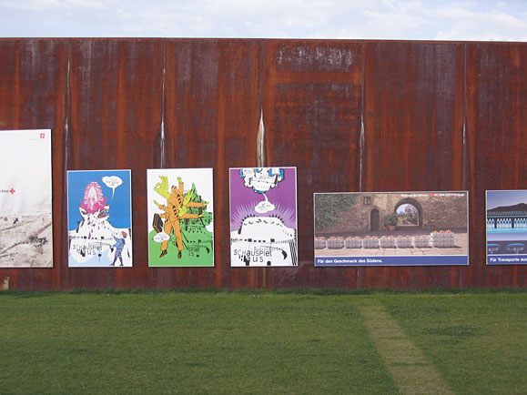 The students found the perfect venue in the middle of Berlin’s government district—200-meter long, opposing steel walls in the Spreebogen Park. The posters, some of which were billboard size in format, were mounted on the walls in a simple fashion that left no residues, and the venue was transformed into an ideal temporary exhibition space.